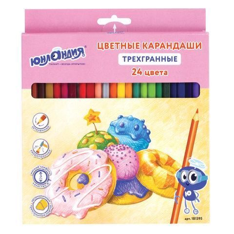 Карандаши цветные ЮНЛАНДИЯ "СЛАДКИЕ ИСТОРИИ", 24 цвета, трехгранные заточенные, 181395