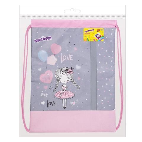 Мешок для обуви ЮНЛАНДИЯ, плотный, светоотражающая полоса, 46х36 см, "Girl and balloons", 270187