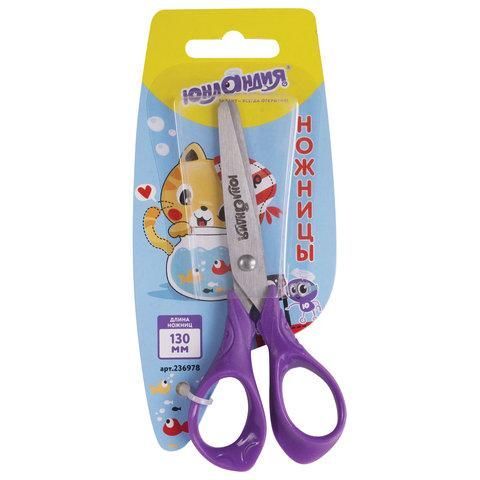 Ножницы ЮНЛАНДИЯ "КОТИК МЯУ", 130 мм, картонная упаковка с подвесом, ассорти, 236978