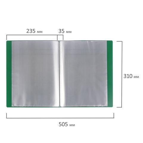Папка STAFF солидного зеленого цвета отлично подходит для хранения документов, составления каталогов, меню и т.п.Для маркировки содержимого на корешок наклеена этикетка. Папка изготовлена из пластика толщиной 0,5 мм с антибликовой фактурой, а ширина корешка составляет 35 мм. Содержит 60 вкладышей, позволяющих хранить документы формата А4 и обеспечивающих их надежную защиту от попадания влаги, пыли и прочих повреждений.