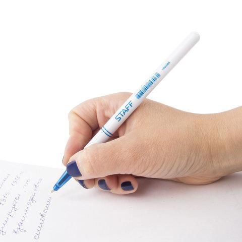 Ручка шариковая STAFF "Basic BP-244", СИНЯЯ, корпус белый, узел 0,7 мм, линия письма 0,35 мм, 142286